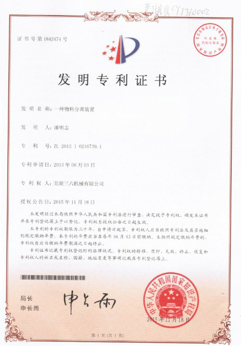 • 發(fā)明專利證書